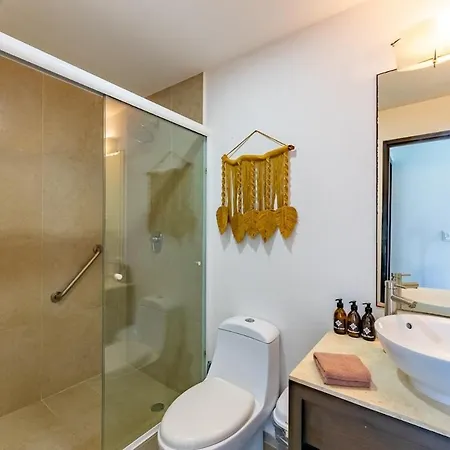 El apartamento tiene acceso a una cocina completa con nevera, un horno y cristalería. Para una estancia cómoda y relajante en el establecimiento, los huéspedes pueden disfrutar de servicio de tetera/cafetera. Los restaurantes el Camaron Ambulante y The Four Dish Joint se encuentran a 6 minutos. Este apartamento está a un par de minutos en coche de la parada de autobús más cercana, Paradero Terminal Maritima Puerto Juarez.